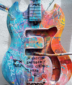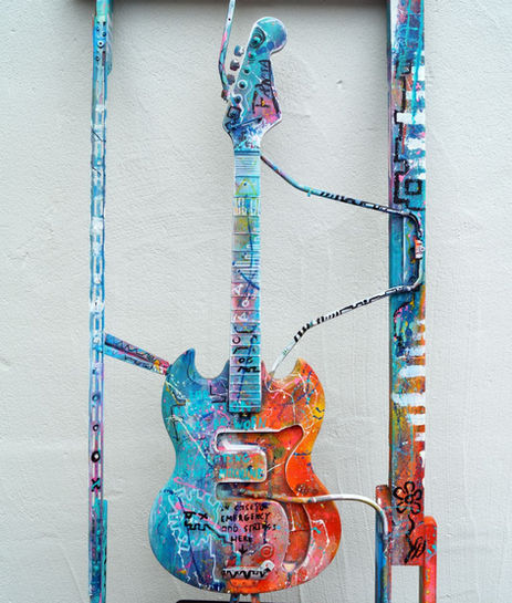 Gefertigt aus Metallschrott, Fahrradreifen oder anderen interessanten Gegenständen. Anschließend mit Gold oder Kupferfarbe lackiert.